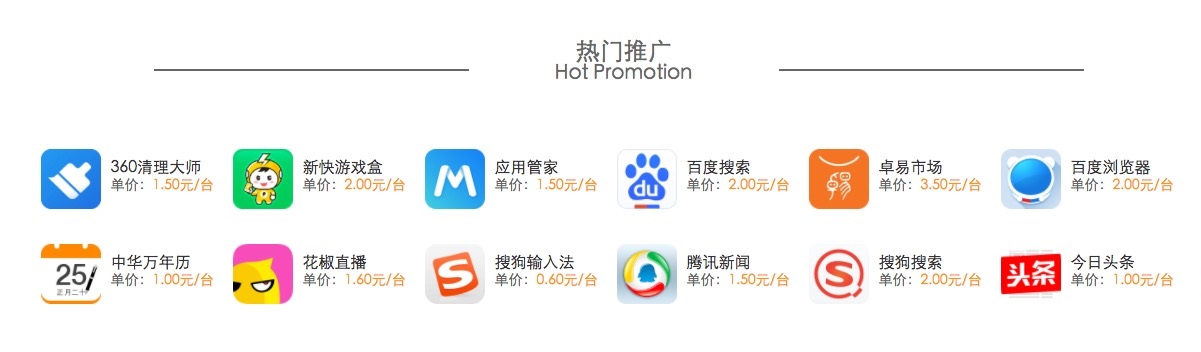 界面新闻记者以“流量劫持”和“流量分发”为关键词进行检索,马上就出现了各种流量分发公司。以一家名为“蘑菇分发”的流量公司为例,其主页上对一些热门App的推广价格是明码标价的。换言之,黑客采用“劫持”的方式,只是以更低的成本、更“便捷”的方式获取相应的利润。