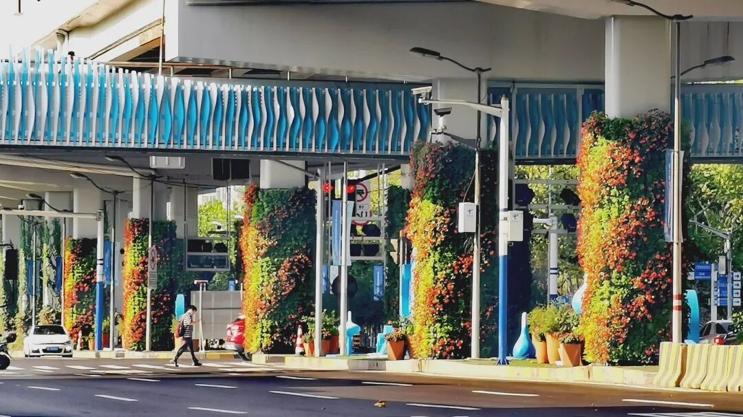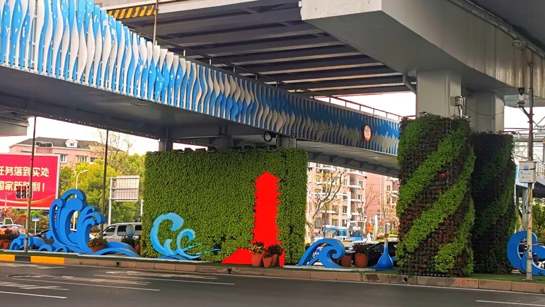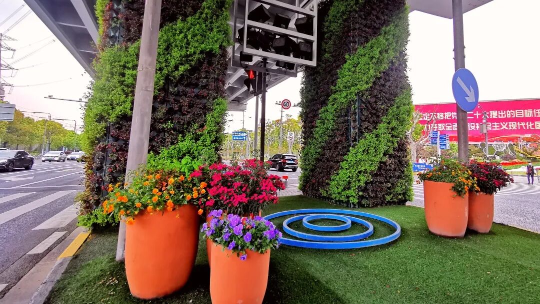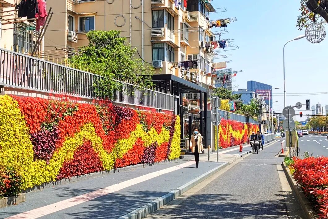 宝杨路淞宝路口、宝杨路同济路口布置两处花墙,面积达220平方米。宝杨路道路中间,同济路至宝东路区域布置花箱1600米。