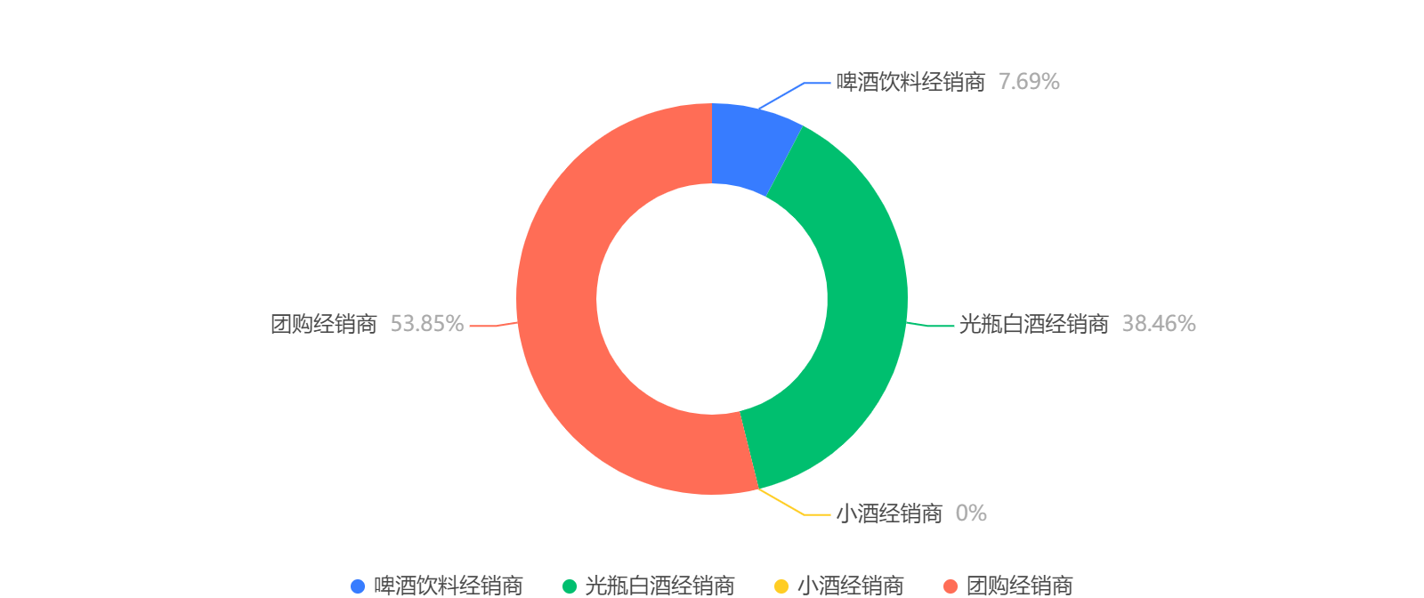 调查显示,百元酱酒经销商最喜欢的合作伙伴是团购经销商、光瓶白酒经销商、啤酒饮料经销商,占比分别为53.85%、38.46%、7.69%。最喜欢的厂商合作模式分别是办事处携手经销商1+1合作、第二是厂家为主酒商配合,第三才是酒商为主厂家配合,占比分别为69.23%、15.38%、15.38%。