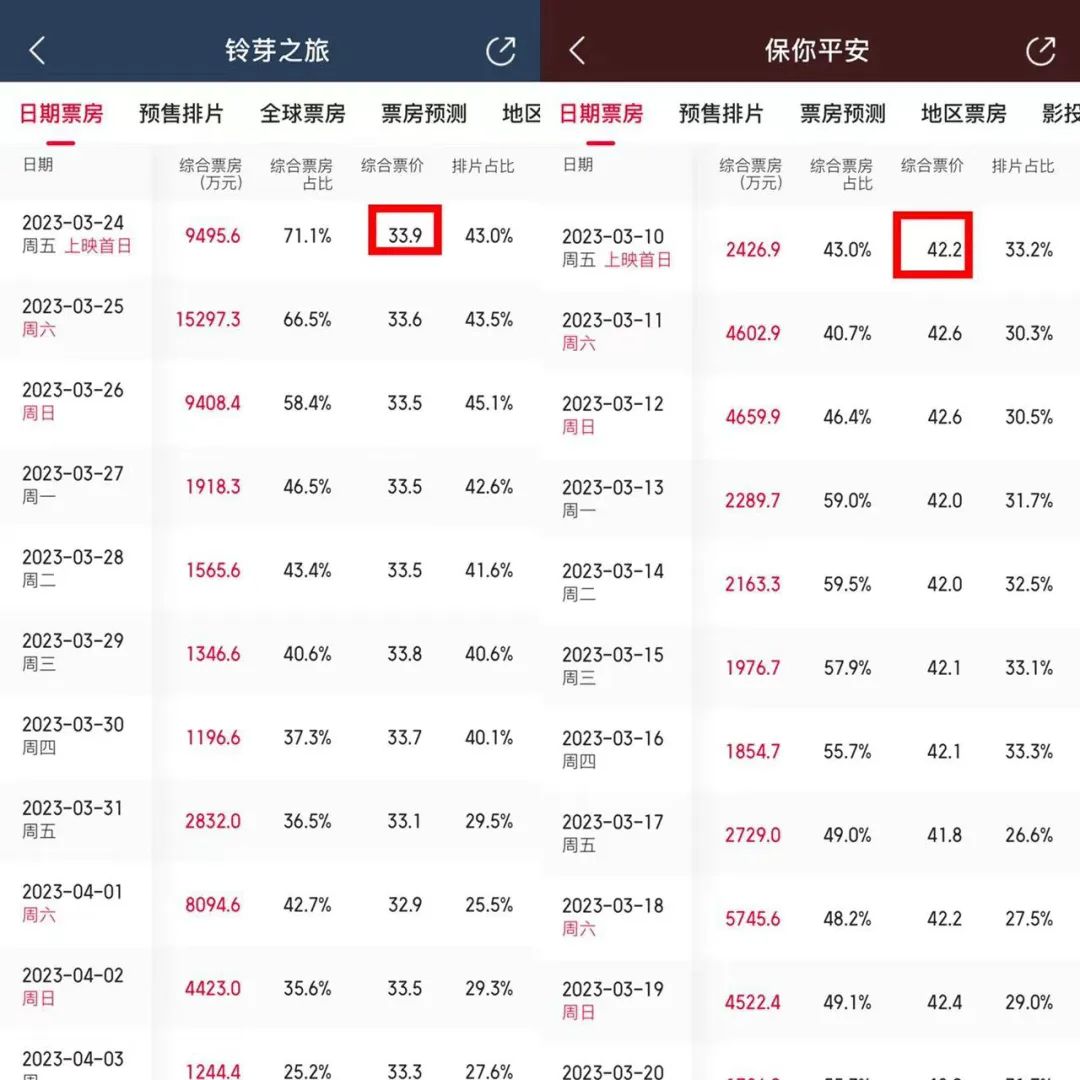 《铃芽之旅》能从冷档期脱颖而出,除了有效营销,与其强大的发行与票补也不无关系。《玲芽之旅》上映首日平均33.9元的票价,远低于同期影片——比如《保你平安》的42.2元、《忠犬八公》的37.1元、《龙马精神》的41.5元。直到现在,《铃芽之旅》的平均票价也低于同期很多影片。