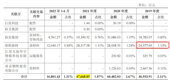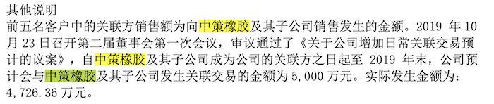 发行前,上市公司彤程新材(603650.SH)持有中策橡胶8.92%的股份位列第四大股东,因此彤程新材也为中策橡胶的关联方。彤程新材2019年年报显示,该年向中策橡胶及其子公司销售发生的实际金额为4726.36万元,而公司2019年披露的向彤程新材关联采购金额为2.50亿元,也出现较大差异。