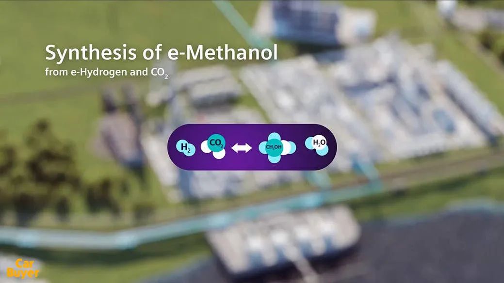 简单来说,它的合成原理,是通过水电解生成的H2,再与CO2催化反应,进而生成的一种液体碳氢链燃料。这个过程中,为了降低排放指标,其中氢气通过“电解水”的方式获得,二氧化碳或一氧化碳,直接从工业废气或是普通空气中采集而来。至于电解水需要大量用到的电力能源,还并非普通的用热力发电生产的电能,而是通过风力发电或水力发电获得。