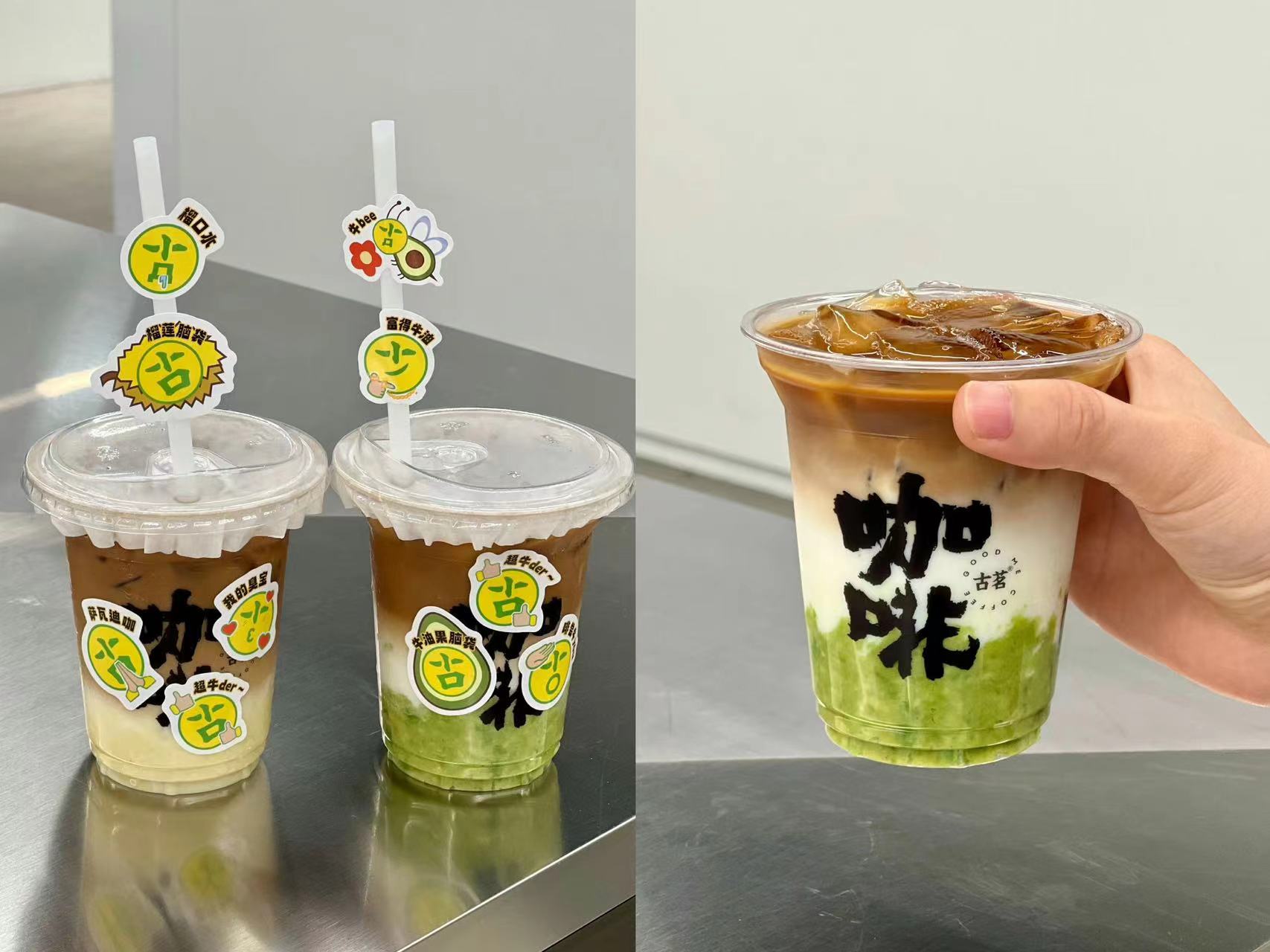 就目前而言,古茗摸索出的路线似乎是强化水果在咖啡里的存在感。比如使用榴莲、牛油果等色彩浓郁、味道突出的水果种类。从视觉呈现和话题度来看,这无疑是利于出片与社交分享的,就口味而言,强调水果的咖啡对大部分消费者而言是友好的。一位咖啡店主理人在社交平台上感叹,人们大多数不是想喝咖啡味的咖啡,而是奶茶味的咖啡。