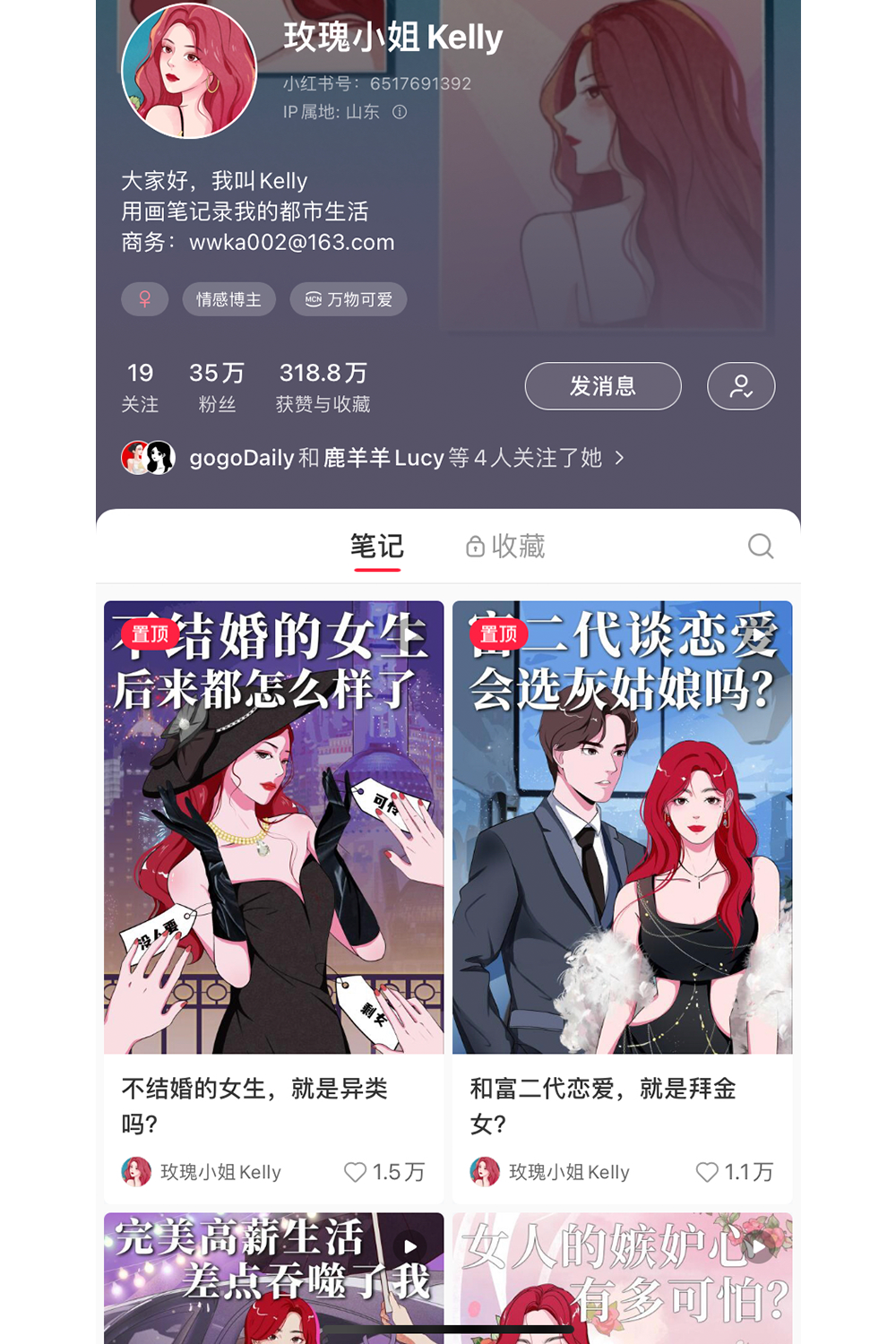 从上述漫画博主账号数据可以看到,目前较头部的几个账号,在小红书的粉丝量均在80—100万,基本上是近一年集中积攒的。这一数据,几乎赶超大多数小红书的腰部主播,且粉丝具有很强的忠诚度。“像我们的账号几乎很少掉粉,就算是可能连续有恰饭的内容,粉丝们也多半表示‘让她恰’,这也是很让我们欣慰的。”