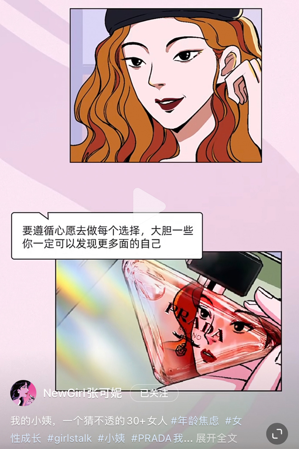 “故事内容多半是围绕‘girlstalk’和‘girlspower’的话题来进行的,所以比起说是带货网红,我们更愿意称自己为‘文化博主’。在这一点上,我们就有了一些优势,因为很多用户和粉丝,点开我们的视频是抱着学习和共情的目的来的。”「NEW GIRL张可妮」的创作团队谈到。
