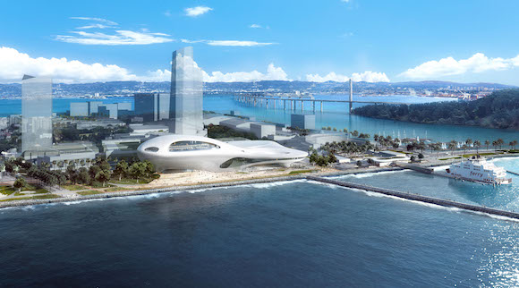 旧金山政府为博物馆提供的选址位于当地著名的“金银岛(Treasure Island)”,地块眺望旧金山城市景观、金门大桥及海湾大桥。