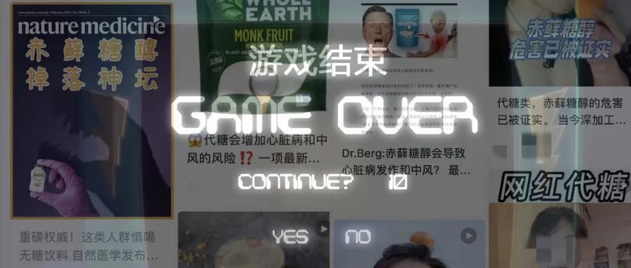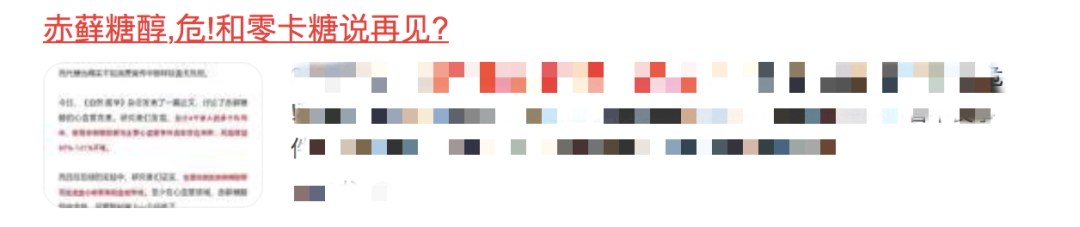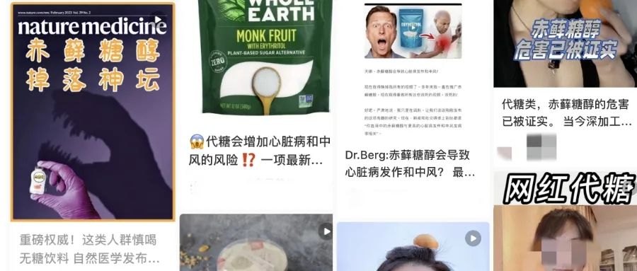 这新鲜热乎的科学动向,必须得由博主们亲自下场总结成结论,剥离掉复杂的背景和关键的细节,重新组装、扩大成为“代糖塌房”“赤藓糖醇完了”“无糖饮料,危”的新观点。