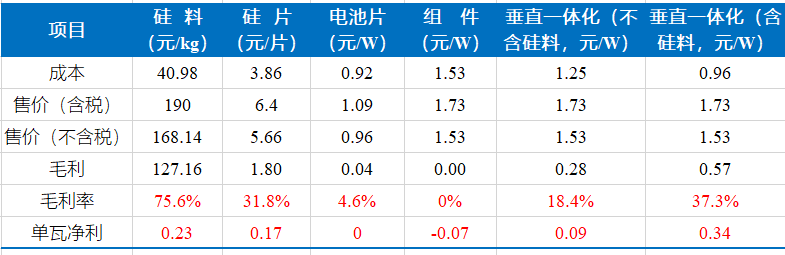 不同环节产品成本、售价、利润情况(4月15日);来源:智慧光伏