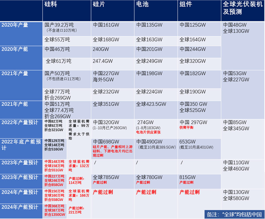 也就是说,即使不用新建任何产能,对应2023年全年光伏装机最乐观的400个GW的需求,不用考虑海外电池、组件的产能情况,也已严重过剩!
