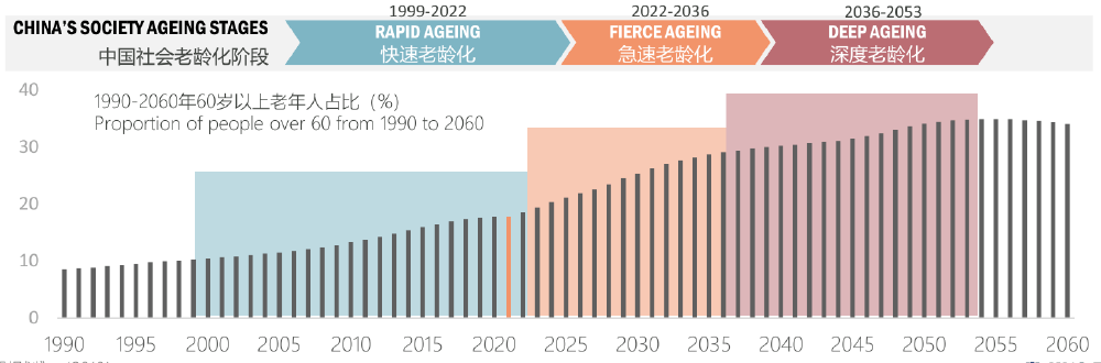 中国老龄化社会进程图,图片来源:Wavemaker
