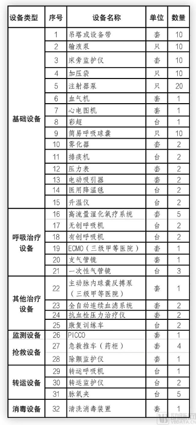 每10张ICU床位设备配置,图源《综合ICU设备配置参考标准》