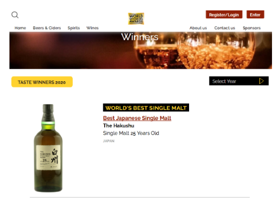 最引人关注的是近十年间,在国际级的威士忌大赏WWA(World Whiskies Awards)上,三得利旗下的山崎、白州和響多次拿下了“最佳单一麦芽威士忌”和“最佳调和威士忌”两项重量级大奖,狠狠给了祖师爷——苏格兰威士忌几记耳光。