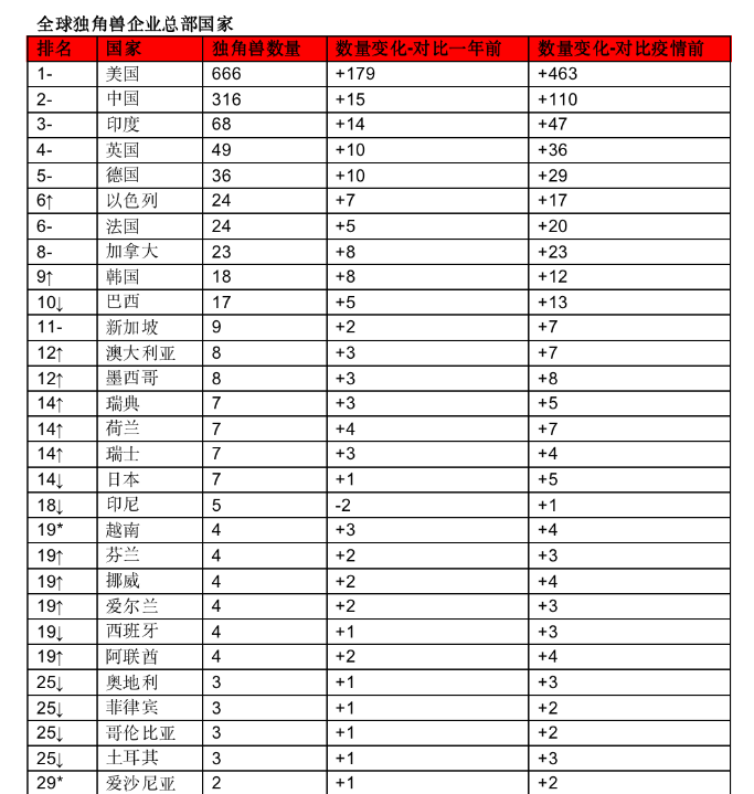 榜单显示,目前,全球有1361家独角兽企业,分布在48个国家。这其中,美国以666家独角兽企业领先,占全球独角兽总数的49%,中国则以316家位居第二,比一年前增加15家,独角兽数量比后面15个国家加在一起还要多。
