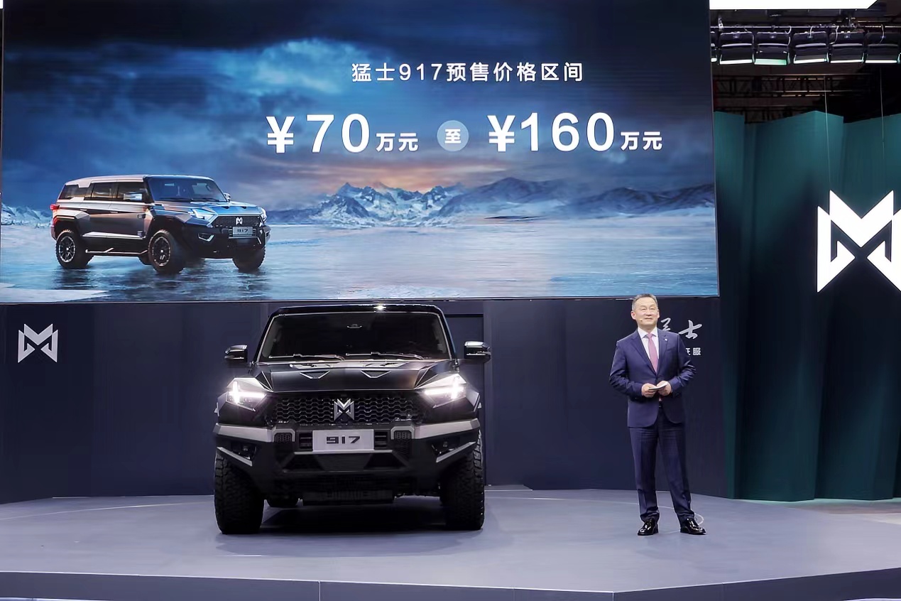 隶属东风旗下的猛士首发车型917的例子同样鲜明生动。和U8一样,纯电动的猛士917定位硬派越野车,在四电机的加持下最大功率超过1000马力,目光同样瞄准硬派越野车标杆奔驰G级和未引进至国内的的GMC HUMMER EV。猛士917的预售价格同样引人瞩目——70至160万元。