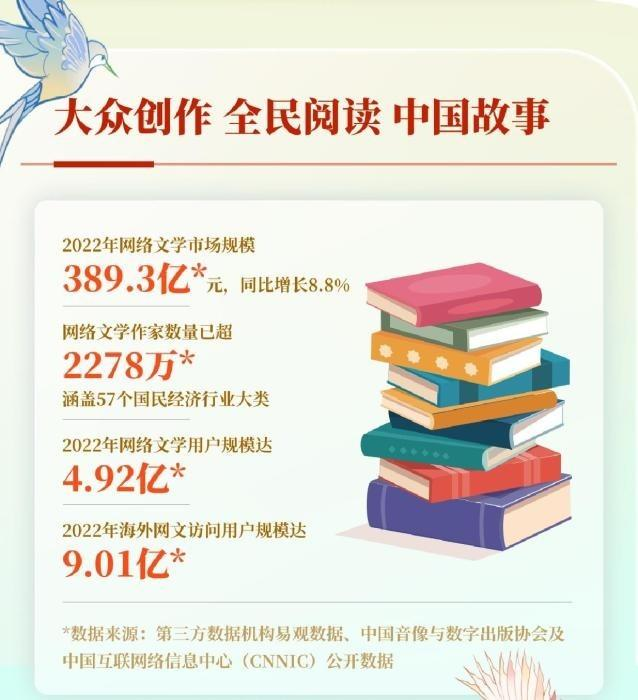 据中国社科院全新发布的《2022中国网络文学发展研究报告》,2022年中国网文用户达到4.92亿,作者超过2278万。