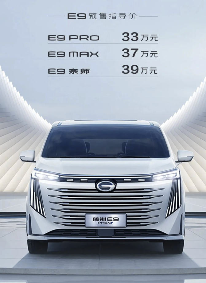 4月18日,据广汽传祺官微消息,传祺E9开启预售,预售指导价为33万-39万元。