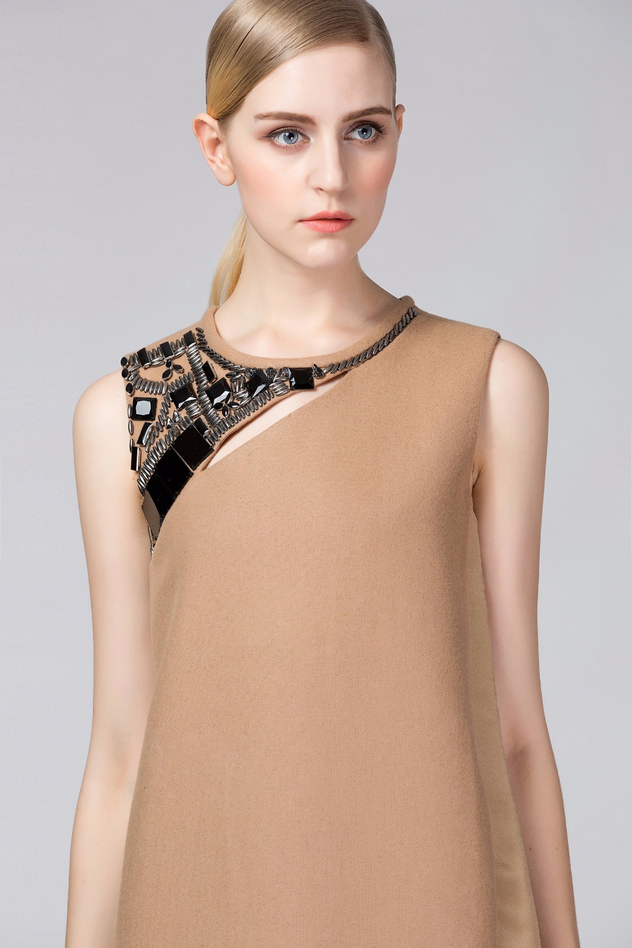 木啓 ,不同面料的碰撞,流畅简洁的剪裁,手工钉珠、拼接镶嵌让服装呈现不同的肌理,用品质与细节来诠释时尚的真谛。