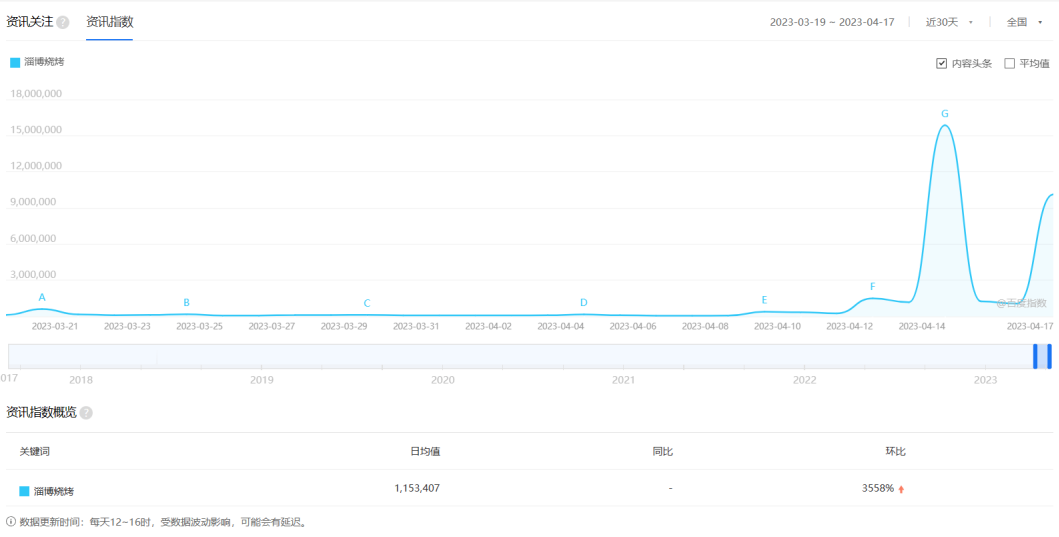 打开百度指数,搜索“淄博烧烤”,其中的资讯日均数量已经突破110万,环比增长3558%。在抖音中搜索“淄博”,出来的视频不仅数量巨大,且基本均与“烧烤”有关。似乎一夜之间,淄博成为了中国烧烤之都。