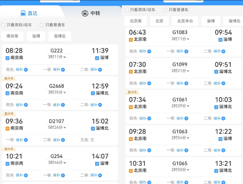 其次,淄博地处山东半岛,北边是北方经济龙头北京、天津,南边挨着经济强省江苏,周边省市居民普遍消费能力高,且得益于中国高铁及高速公路建设,两边的旅游者可以轻松到达淄博。我们搜索了“五一”期间北京、南京到淄博的车票,显示已经全部售罄,可见“淄博烧烤”的火爆程度。