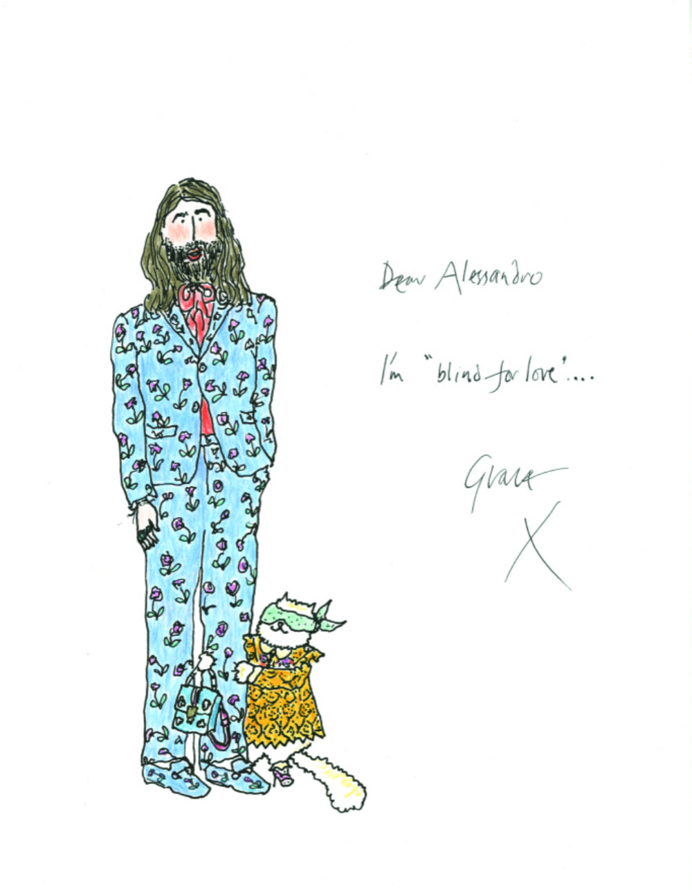 从《女装日报》目前公开的部分内页来看,这本杂志的视觉效果很明确地走着Michele偏好的路线:那种晦暗不明却又及其明艳的美感。这本杂志有280页,将于11月9日在Dover Street Market和Colette出售,走近店中的客人们如果看到一本主题是“Blind for Love”(盲目的爱)的大书,那就是找得没错了。这个主题听起来也像是Michele的复古情调,它来自于18世纪的作家Fanny de Beauharnais的手稿,这位Fanny也是法国政治家Claude de Beauharnais的母亲,她的作品和相关素材其实也常常出现在Gucci的衣服和配饰里。