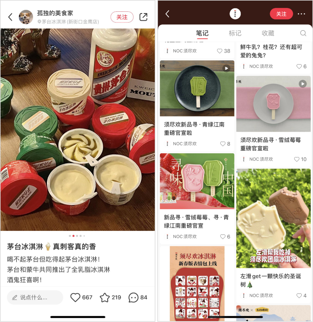 相比2015年,伊利、蒙牛的高端化路径越来越成熟了。前者在2021年推出国潮高端雪糕品牌「须尽欢」,定价15元左右,并通过中国风的产品创新和营销故事夯实品牌定位;后者的蒂兰圣雪也进行品牌升级,提出打造「国字号」高端冰淇淋的目标,定价在15元左右,2022年蒙牛还通过与茅台合作推出高端冰淇淋,定价60元左右。