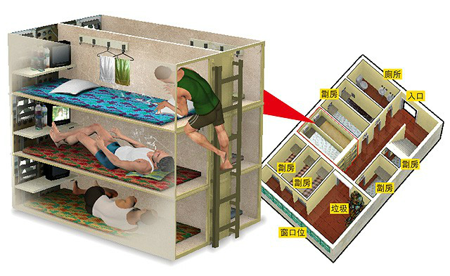 可没想到4年过去,香港住房问题并没有得到改善,蜗居在笼屋、板间房和劏房的租客数量增加了一倍。现在,厕所房都能独成一间“”甚至连楼梯底的床位都明码实价了。