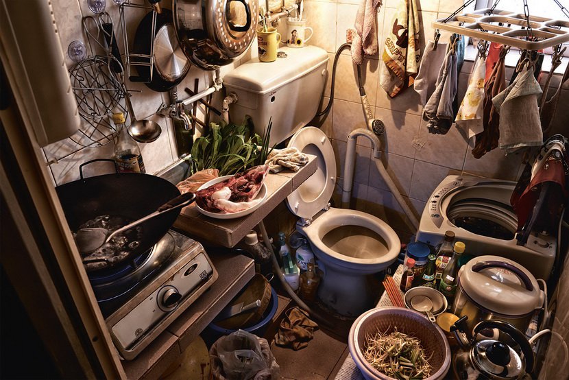 “劏房”指的是把一套几十平米的房子分成几个独立单位。“劏”字在粤语中有宰杀的意思,是指从肚皮切开动物,再去除内脏。但跟我们合租房的概念不太一样,这些被分割开来的“劏房”往往会有独立卫生间,狭小的空间就是一个五脏俱全的家(甚至客厅+厨房+卧室+卫浴不分区)。有的“劏房”里住着一家几口,所有的吃喝拉撒就在这几平米里发生。