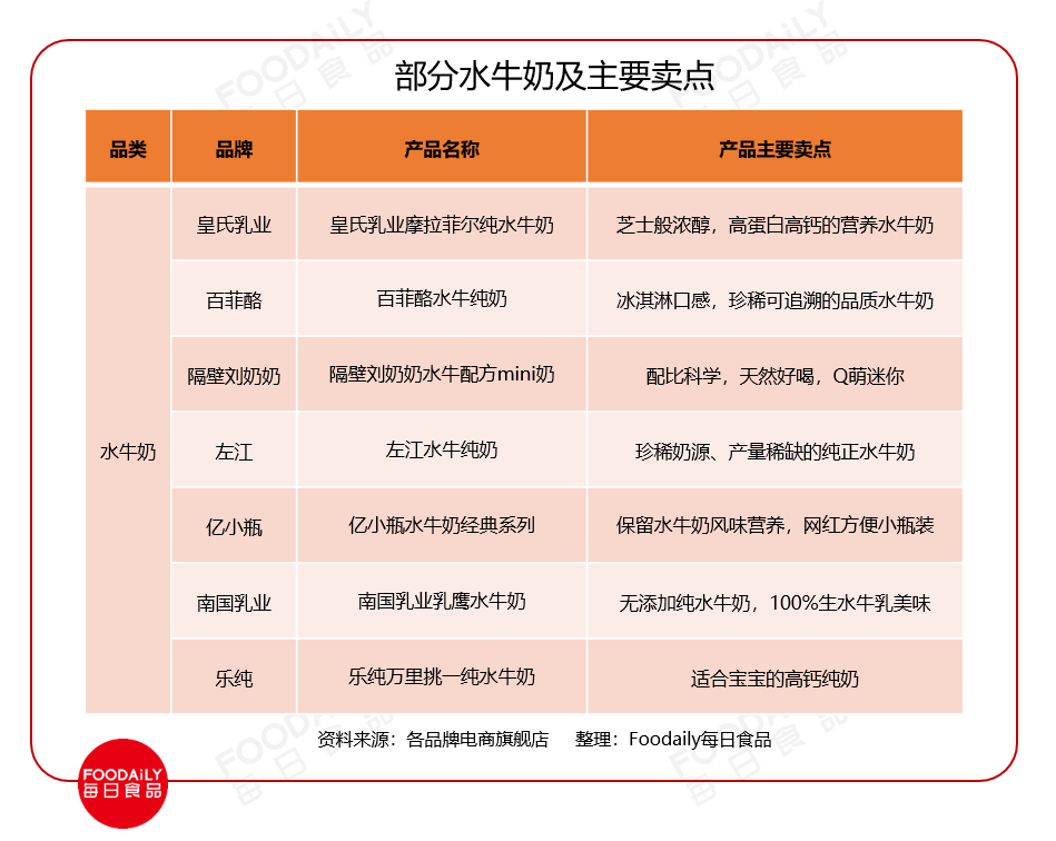 市面上的主流水牛奶产品,除了凸显水牛奶自身营养和稀缺性等卖点,还发展出强调芝士口感、聚焦宝宝群体等更差异化的定位,逐渐迎合当代消费者更追求品质和愉悦体验的多元化需求。