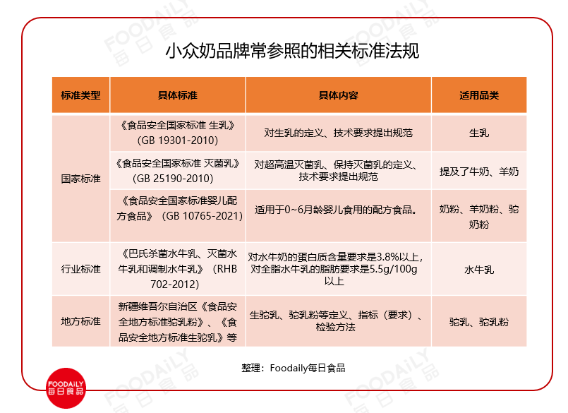 注释:小众奶主要参照牛奶相关的国家标准,也有商家会打擦边球,以固体饮料标准(GB/T 29602-2013)来生产。