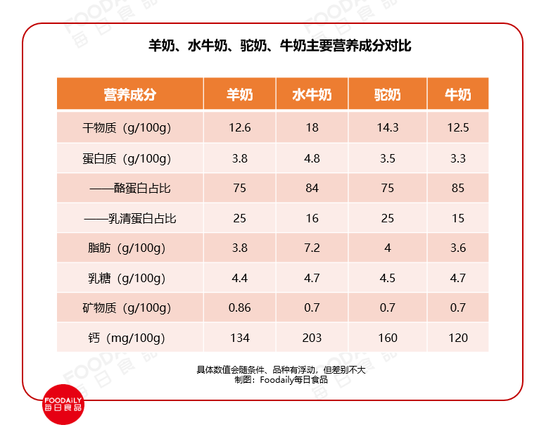 从主要营养成分上看,羊奶、驼奶与牛奶的差别并不算大。但在营养的多元性和吸收率上,它们具有更大的优势。