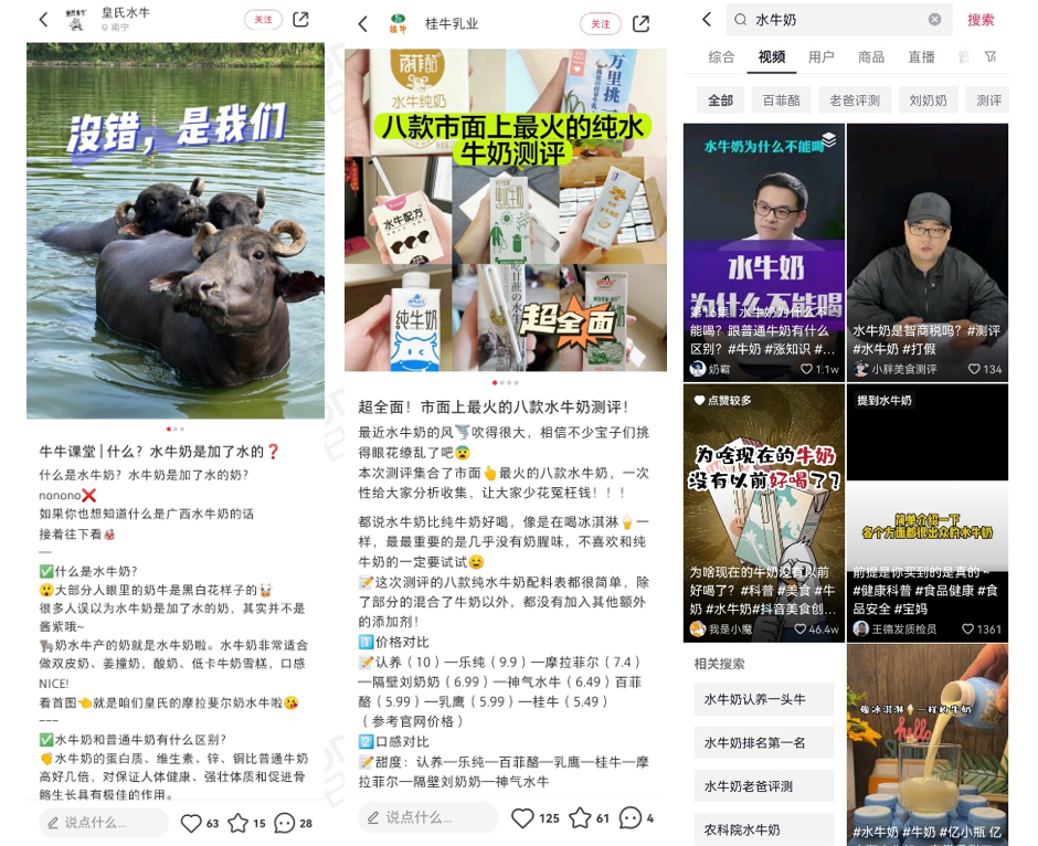 图片来源:小红书_@皇氏水牛,小红书_@桂牛乳业,抖音搜索