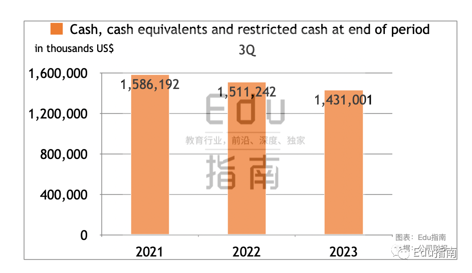 根据财报新东方公司截至2023财年Q3,其现金、现金等价物及受限现金额为14.3亿美元,上一财年该项为15.1亿美元。本财年该项现金资产有所减少。