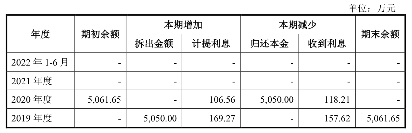 2019年度,恒邦能源向关联方恒邦房开司拆出资金3300万元;2020年度,拆出资金2000万元,合计5300万元;主要是恒邦房开司流动性需要,恒邦能源根据其占用的本金按8%(3300.00万元)和5.35%(2000.00万元)的利率按日计提资金占用利息共计159.36万元。2020年4月其已归还上述资金占用余额并支付利息。