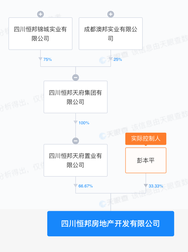 天府置业即四川恒邦天府置业有限公司,是一家以从事房地产业为主的企业,实际控制人是彭本平。