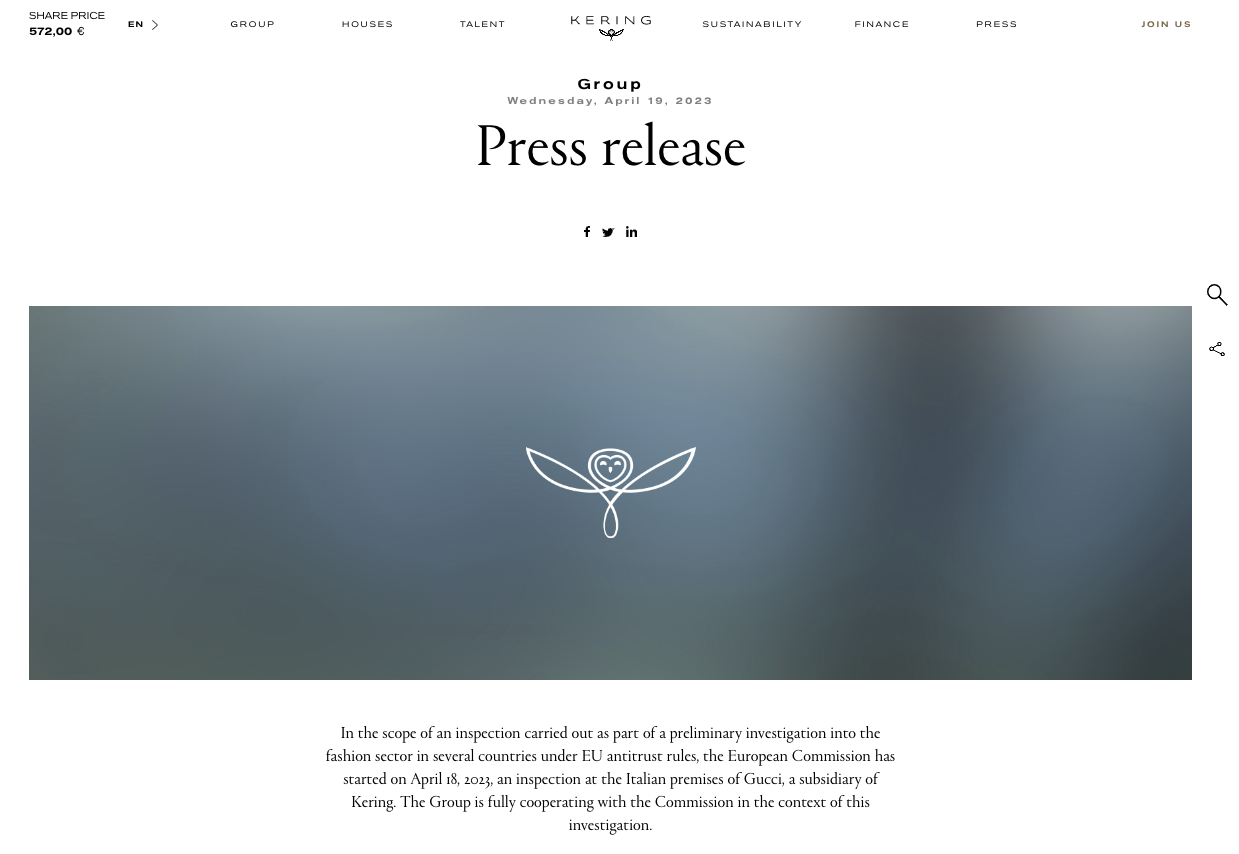 当地时间4月19日,开云集团(Kering)发布新闻稿称,作为根据欧盟反垄断规则对几个国家的时尚行业进行初步调查的一部分,欧盟委员会于2023年4月18日开始对开云旗下古驰(Gucci)在意大利的经营场所进行检查。在本次调查中,集团正与欧盟委员会充分合作。