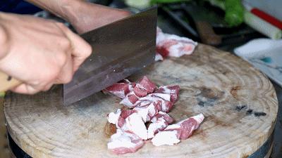相比于浓油赤酱、注重形式的鲁菜,戳子肉的做法并不复杂,重点在于食材的挑选与处理,根据适口度的不同,肉食和蔬菜被切成条或者块状。