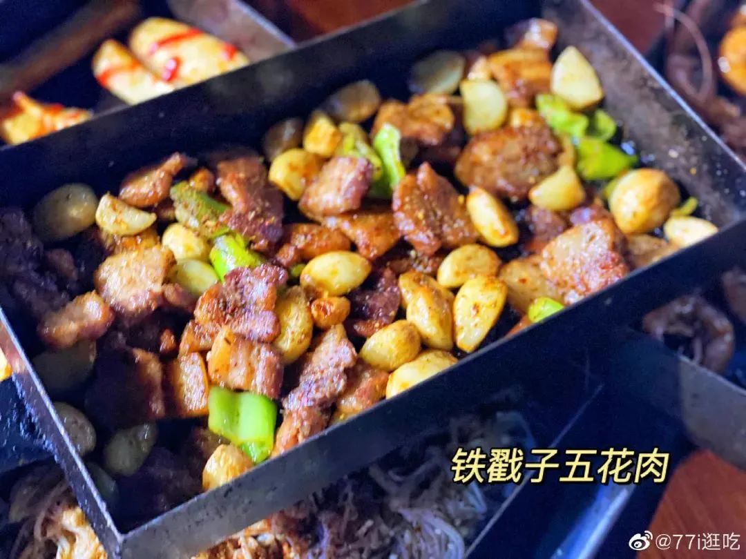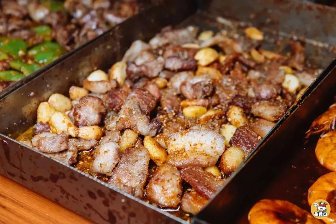 要说戳什么最经典,五花肉一定是当仁不让的第一名,当烤制两面金黄的五花肉,夹着焦脆的肉香扑面而来,伴随着撩人的孜然香味,你只恨不得长两个胃。