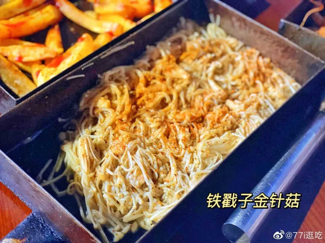 对于李沧人而言,谈起烧烤,就不得不提戳子肉了!如果说淄博烧烤的灵魂是“小饼烤炉加蘸料”,那戳子肉的灵魂必然是“油炸万物小铁盒”。