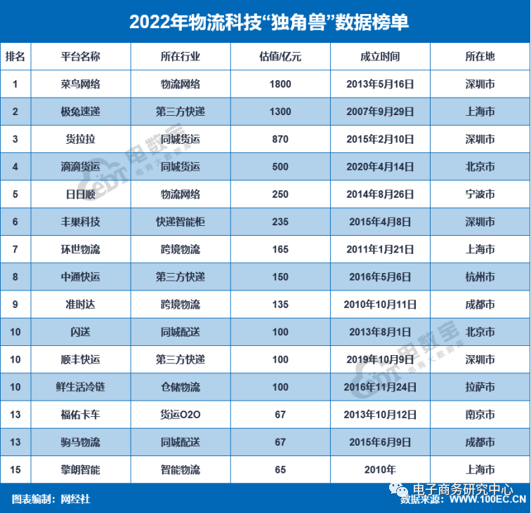 六、物流科技“独角兽”15家,总估值5904亿元