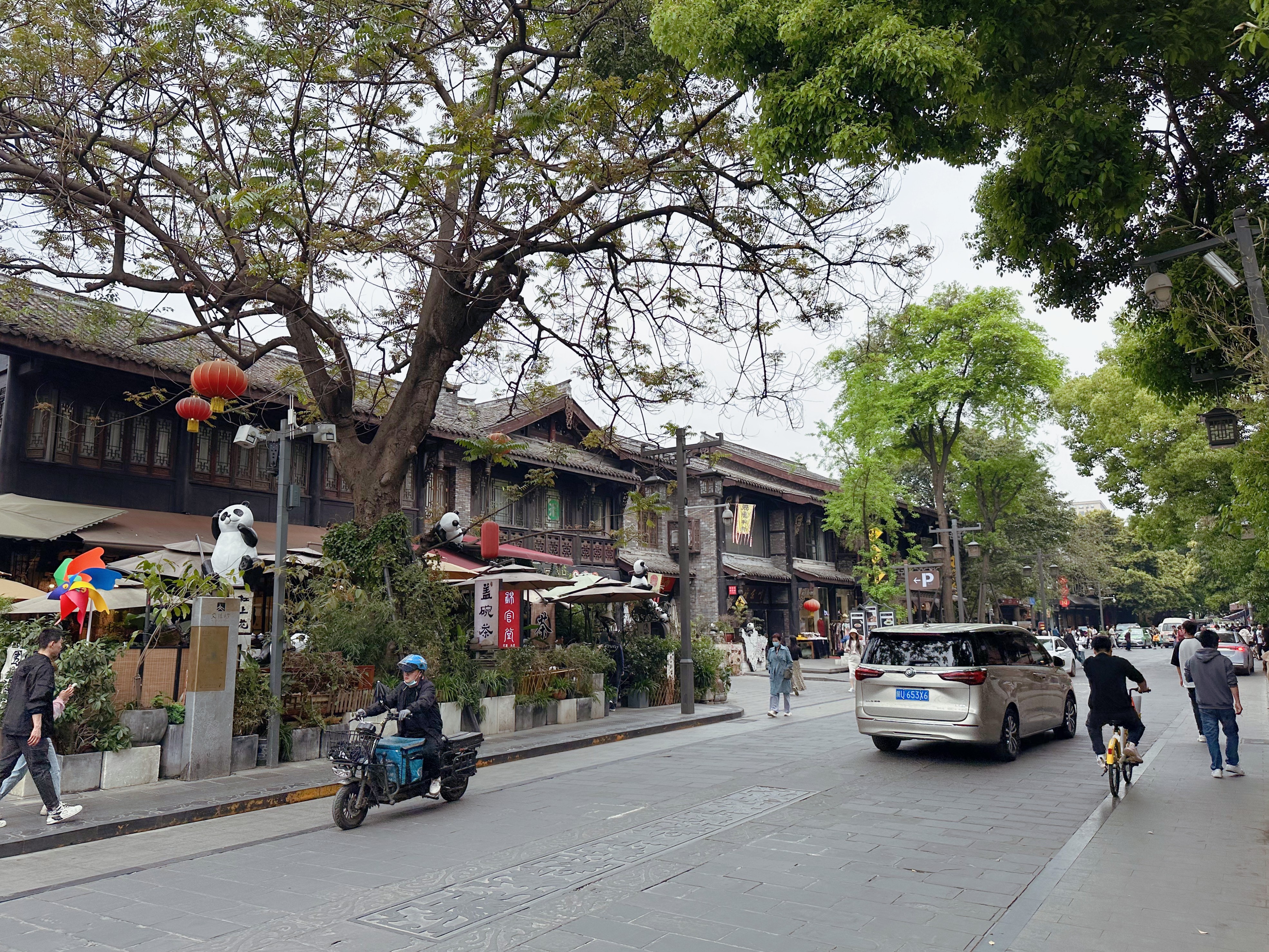 处于闹市的文殊院,四周的城市干道总是车水马龙的景象,旁侧的文殊坊商业街区游客熙熙攘攘,几家老牌糕点铺长年累月门口排着长队,本地人和游客都会光顾的凉粉店同样座无虚席,人们悠闲地坐在街边的茶摊上品着茶、摆着龙门阵,好不热闹。