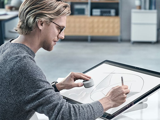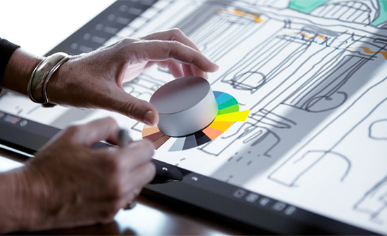 而在普通Win10设备下,Surface Dial只具有一些基本功能,比如选中、滚动和缩放等。在首发几款兼容应用中,Surface Dial能使用更多的功能选项,不过唯有Surface Studio能直接将Surface Dial放置在触控屏幕上使用。