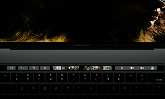 Touch Bar还内置了Touch ID指纹识别模块,可进行安全登入系统以及Apple Pay。 Touch Bar的引入带来了更丰富的玩法,可以用来图片处理、视频编辑甚至是打碟。最重要的是,用户能够自定义其功能按钮。
