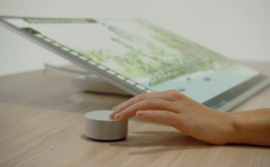 微软的Surface Dial是一个全新的创造力工具,用户可以左右旋转,可重现或进退演示编辑过程,在视频中调节转轮即可改变笔触、墨迹等,当然也可以用它来翻页。Surface Pro 3、Surface Pro 4以及Surface Book的用户也可以用上Surface Dail。