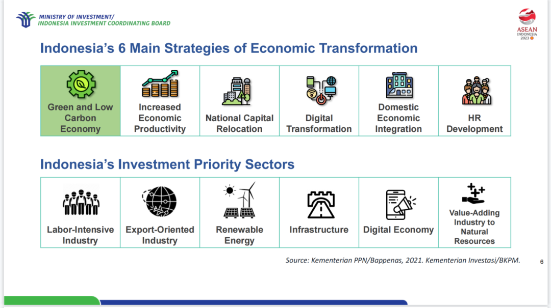 在一份2023年1月印尼官方更新的名为“Welcome China Ventures Delegation(印尼投资部欢迎中国企业)”的官方招商向文件中,印尼已明确表明他们对绿色低碳能源特别关注,基于镍的未来计划,最终希望成为电动车的“出口国”。