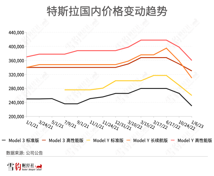 1月初,特斯拉调低中国市场Model3/Y的售价,降幅2万~4.8万元,将这两款主力车型的售价打到历史最低位。随后一周,战火蔓延至日韩、北美、欧洲等市场。过去两个月,特斯拉先后3次在美国市场下调了售价,涵盖全部在售车型;在德国、以色列等国家和地区,特斯拉也下调了部分车型的售价。