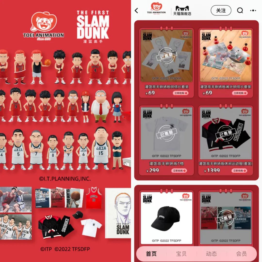 这一波“情怀杀”之下,《灌篮》纪念画册、定制T恤、樱木花道10号球服、湘北五虎人物手办、定制应援旗等等再次成了热卖爆品。