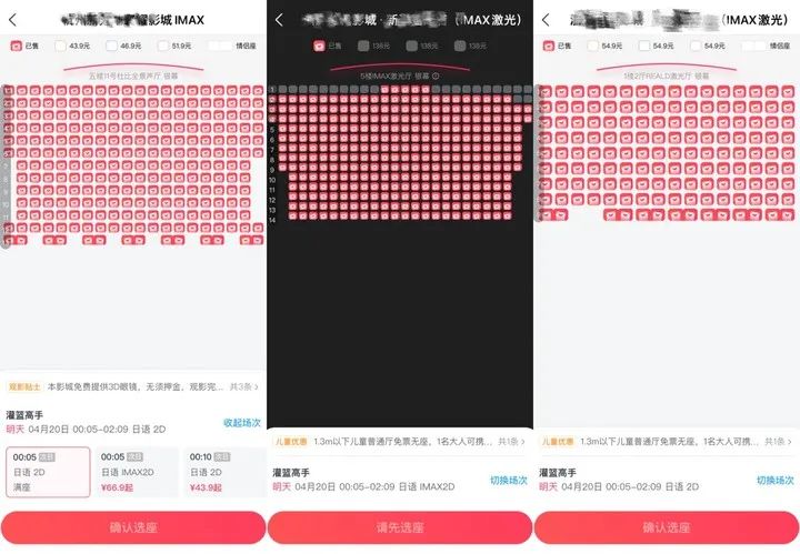 《天下网商》在开映前发现,杭州市中心西湖文化广场的一家大型影院在20日凌晨为《灌篮高手》排了9场零点场,其中超过90%的座位已被预定,尤其是IMAX影厅几乎满座。在杭州其他城区,万达、德信等多家影院零点场排片率和上座率也非常高,较好的观看座位在上映前几日就已被订购一空。