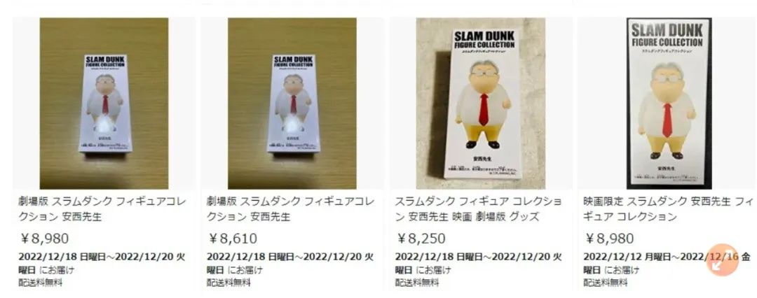为让更多人买到《灌篮》周边,东映动画执行每种商品每人限购的规定。即便这样,很多品类也被热情的粉丝抢光,尤其是安西教练、三井寿和流川枫手办,多家店都挂出售罄告示。在日本二手市场上,原价1320日元的安西教练Q版手办一度被炒到了8980日元。