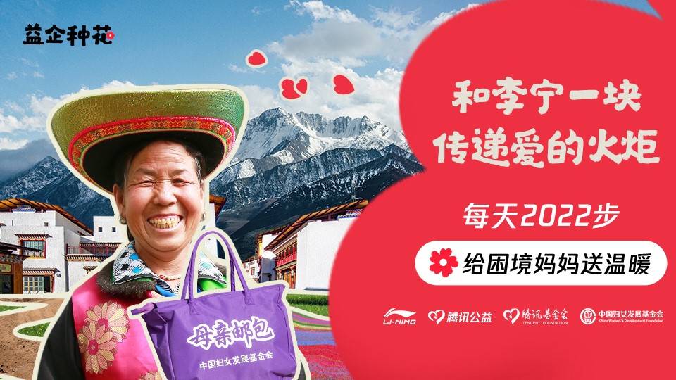 2022年春节,李宁公司携手腾讯公益、中国妇女发展基金会共同发起“一块走”公益活动,通过线上小程序号召公司员工、合作伙伴、社会群众一起通过运动为乡村困境母亲、留守母亲送上母亲邮包,活动期间,累计参与人员超100万人次。