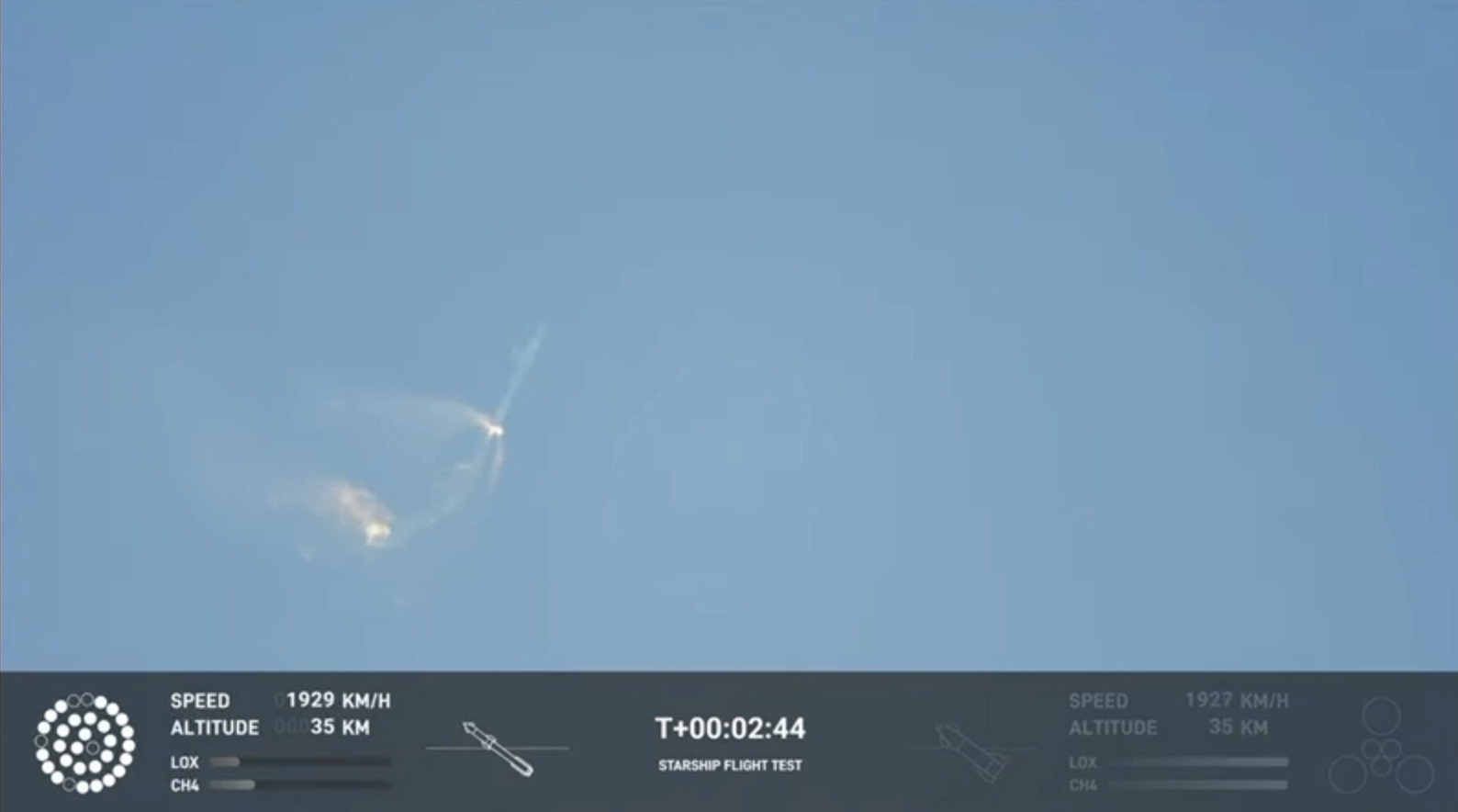 在发射约2分40秒后,星舰似乎出现故障。在升空3分钟59秒时,星舰爆炸,直播画面中出现火团。这也意味着,马斯克寄予厚望的星舰首飞以失败告终。
